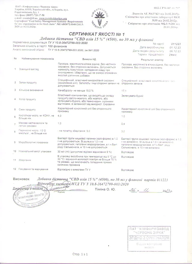 | Склад | Конопляна олія, CBD (КБД) 4500 мг |