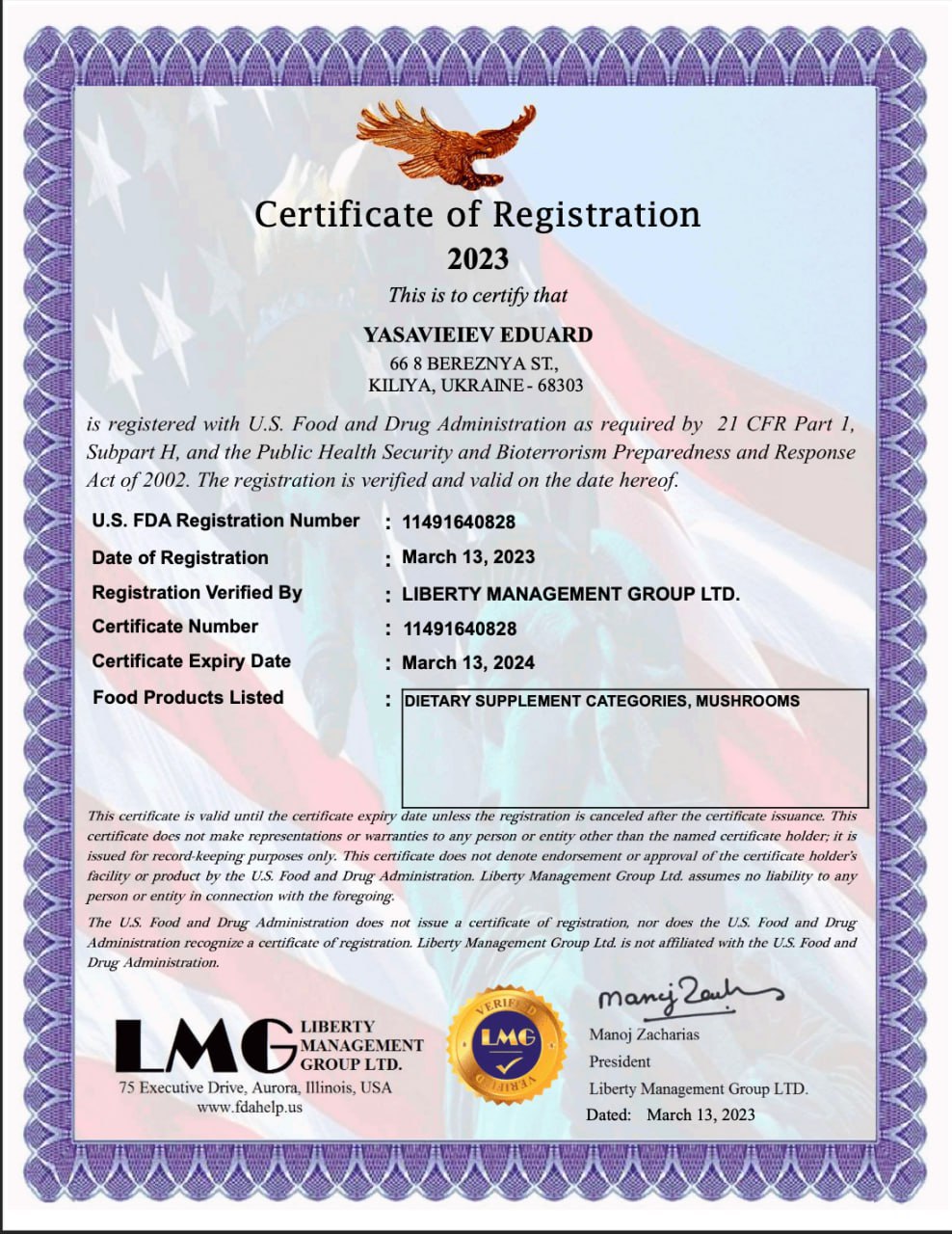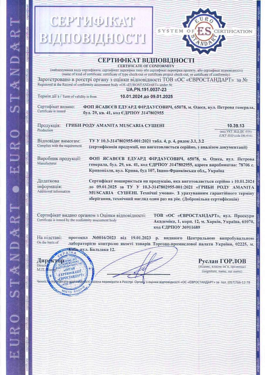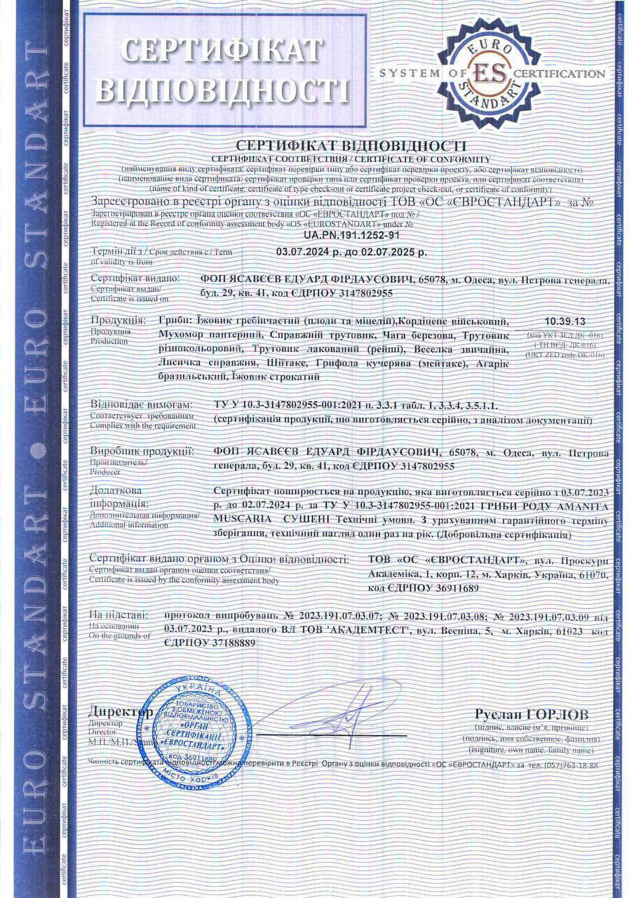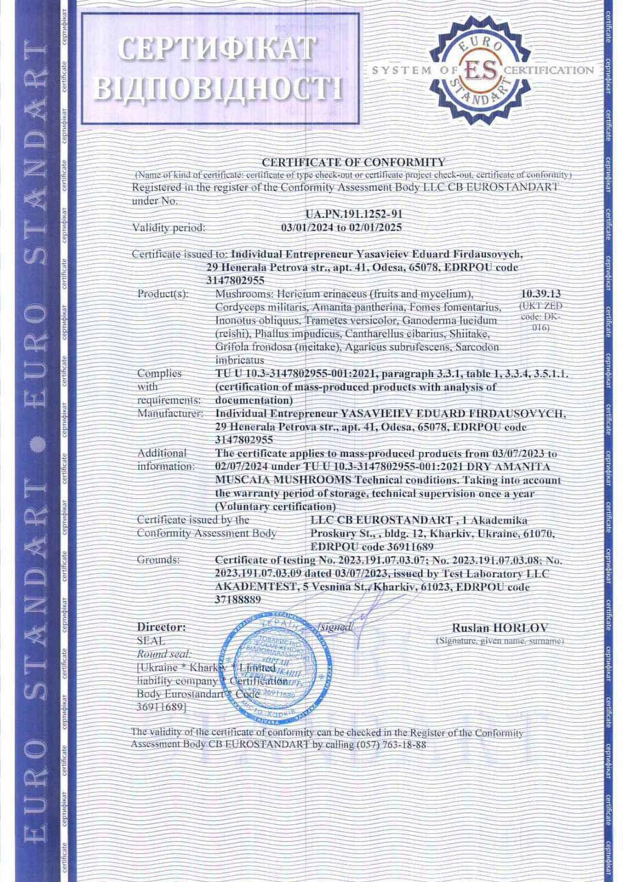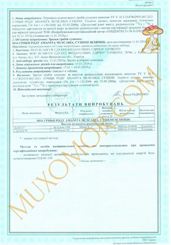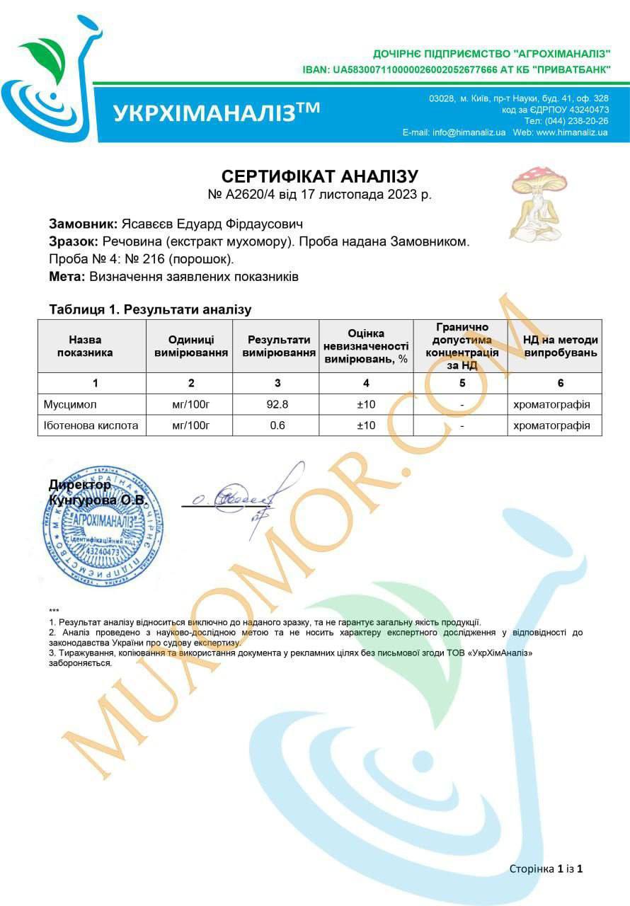 Склад: Мухомор червоний (Amanita muscaria) 0.5 г (500 мг), вегетаріанські капсули.