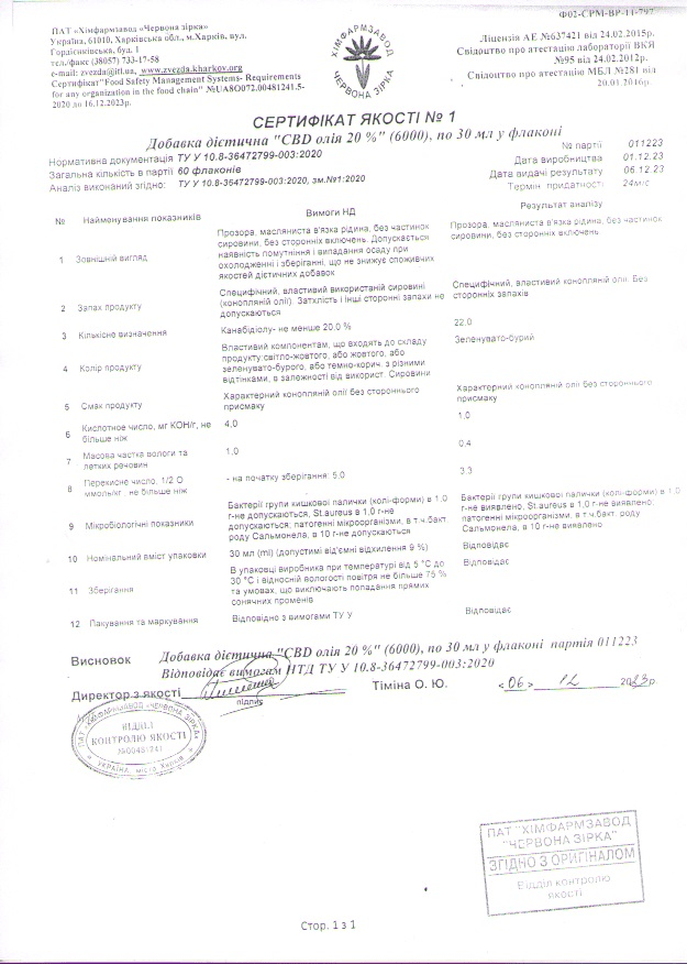 | Склад | МСТ-олія, CBD (КБД) 6000 мг |